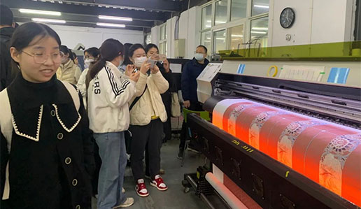 參加揭牌儀式的同學們參觀了鴻盛展廳、測試中心、應用中心等,直觀地了解了數(shù)碼印花的整個打印過程及各種不同材質(zhì)的打印應用,了解了印花科技的發(fā)展、印染行業(yè)的進步。