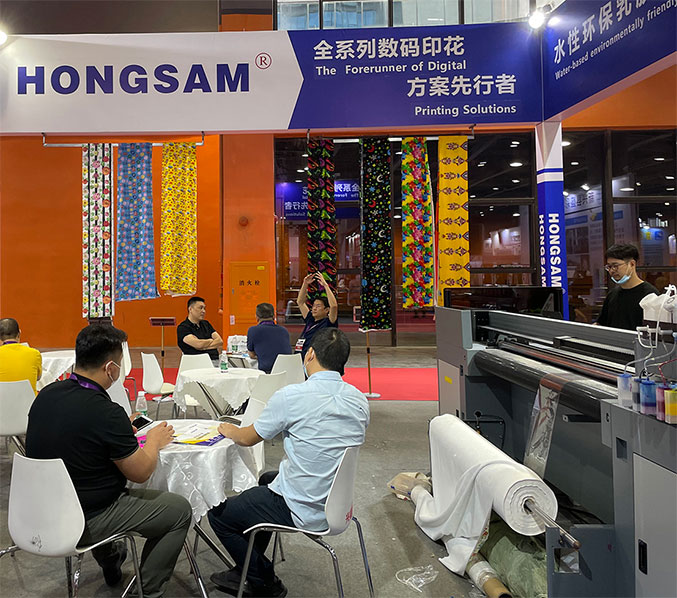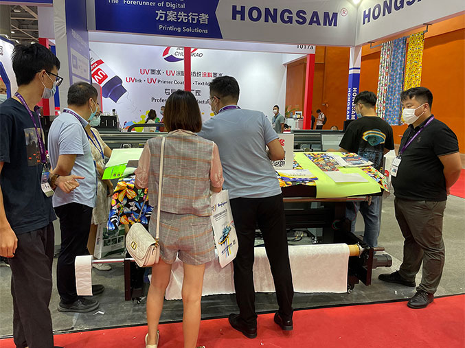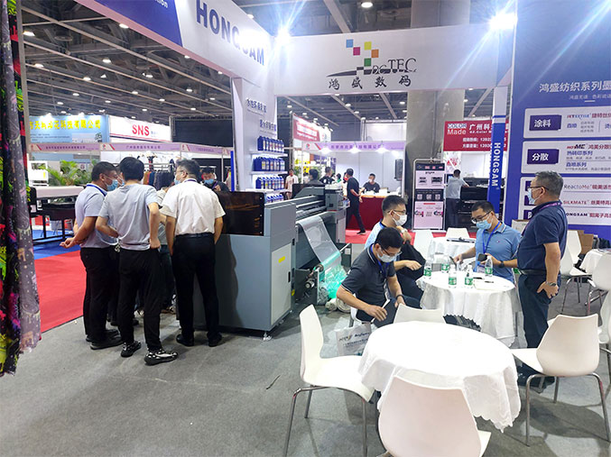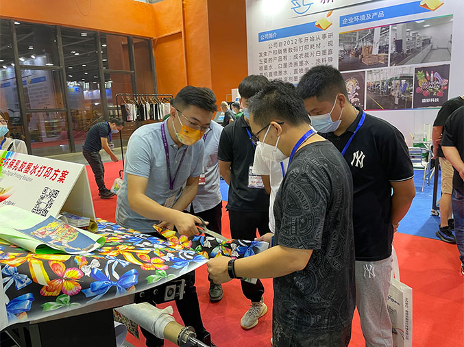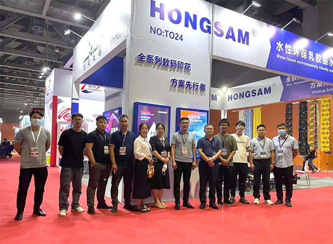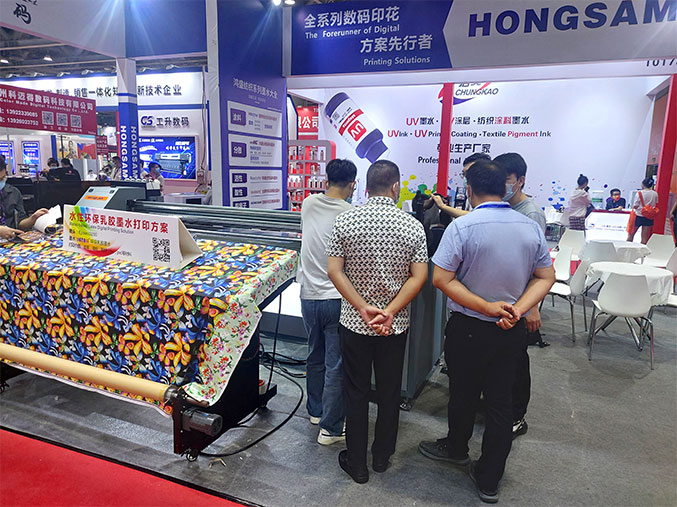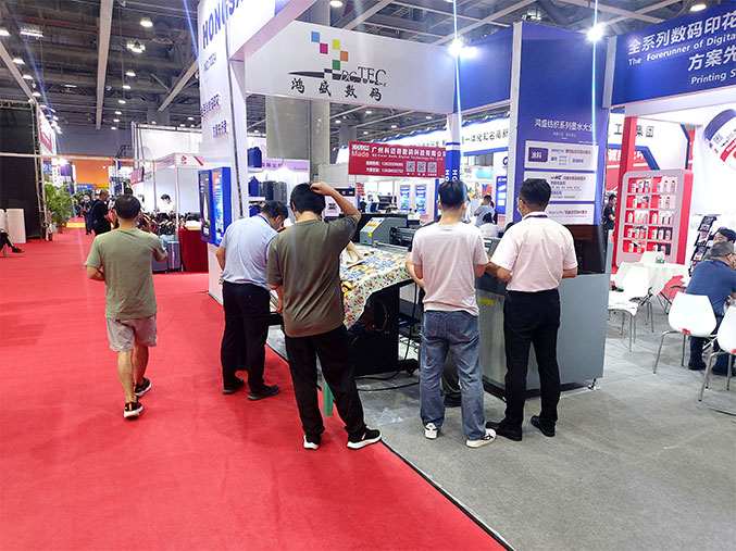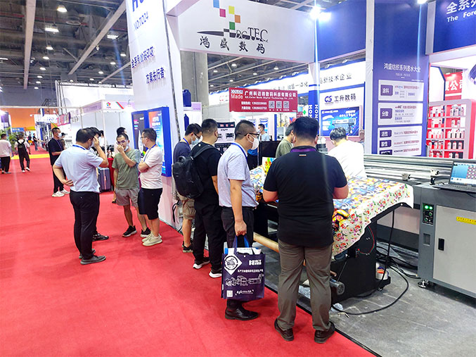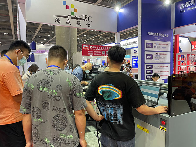 8月,酷熱的天氣并沒有影響大家的熱情,8月18日萬眾矚目的廣州國際紡織制衣及印花工業博覽會正式拉開帷幕,鴻盛數碼T024展位吸引了眾多業內相關人士的駐足參觀與了解,現場更是有我們專業的團隊為前來的觀眾提供細致的咨詢服務及專業的指導意見,讓廣大觀眾近距離了解我們乳膠墨水打印方案。歡迎新老客戶前來觀展!鴻盛數碼期待您的蒞臨!