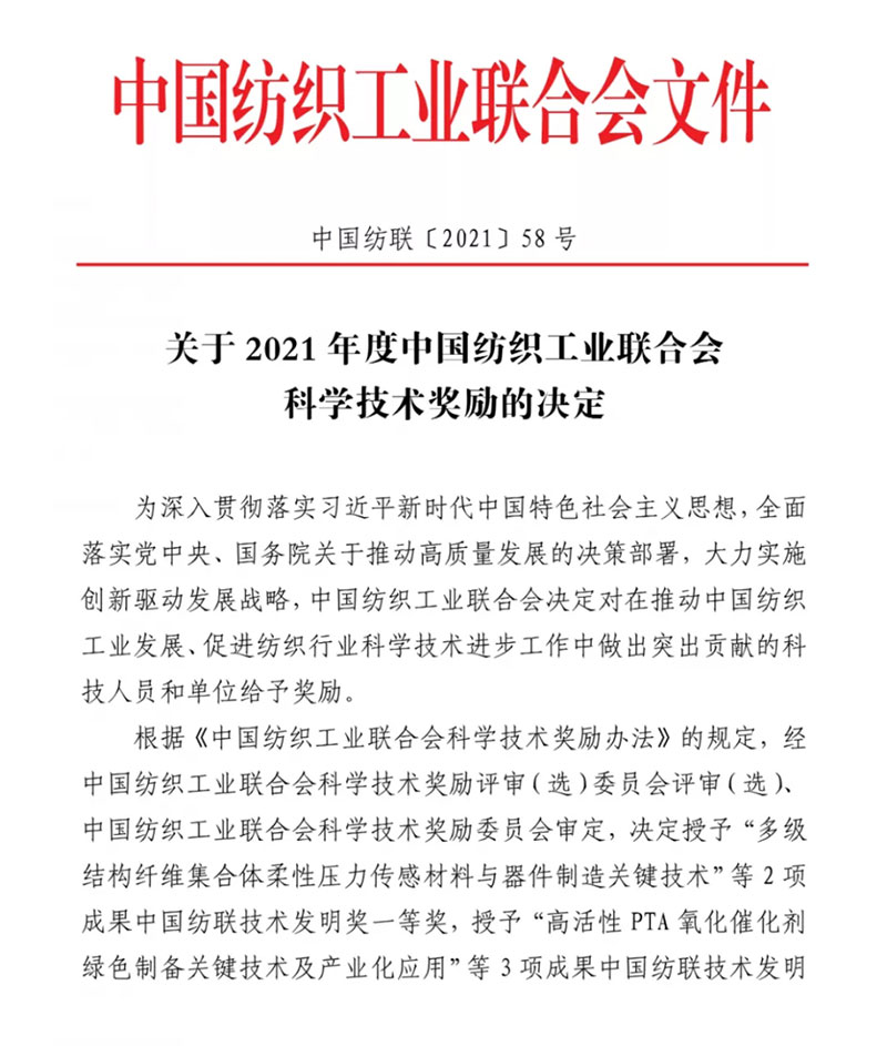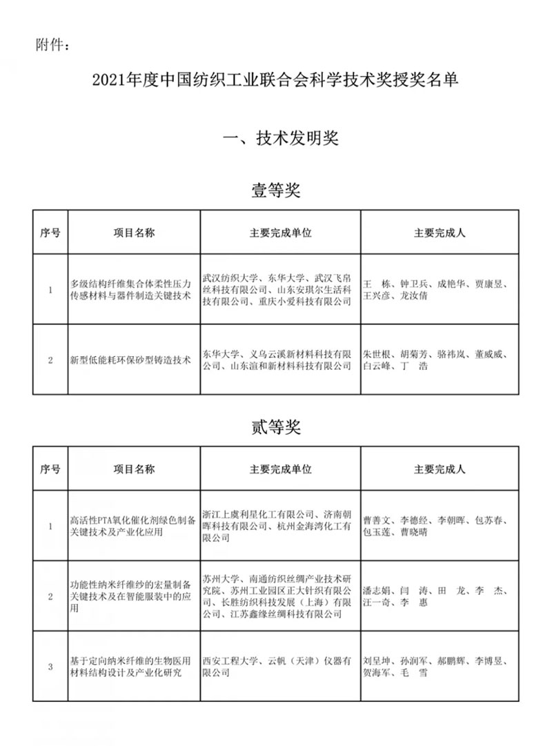 2021年,中國紡織工業聯合會受理的技術發明獎和科技進步獎申報項目,要求是2016 年以來通過地市級以上政府相關部門或中國紡織工業聯合會組織鑒定、驗收的項目,技術發明和科技進步項目至少經過一年以上的產業化應用。