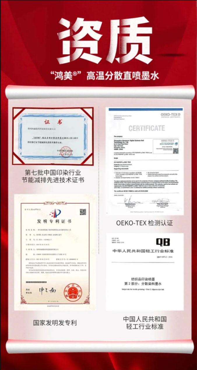 本次鴻盛數碼鴻美高溫分散染料墨水克服重重技術難題,國內首次穩定運行于SinglePass數碼印花機上,開創了國內SinglePass高溫分散直噴方案應用的先河。