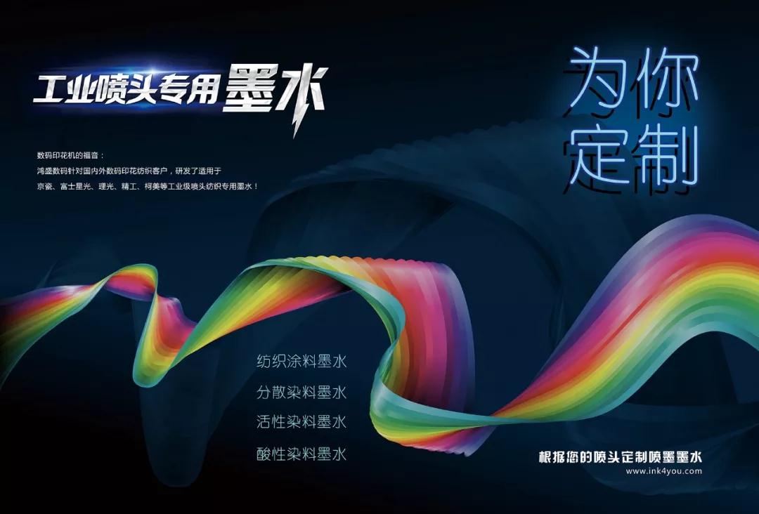 鴻盛數(shù)碼早已針對印染行業(yè)的工業(yè)革命做足準(zhǔn)備,針對數(shù)碼印花系列墨水做了全面升級,研發(fā)團(tuán)隊針對工業(yè)噴頭對墨水流暢性等方面的極高要求,做出調(diào)整,多次上機(jī)測試,色彩、牢度、流暢性均已達(dá)到國際水平,在不同行業(yè)進(jìn)行了成功應(yīng)用,并于2015年推出理工、精工、柯美、京瓷、星光等工業(yè)噴頭專用墨水。基于我們的專利技術(shù)及強(qiáng)有力的印染技術(shù)團(tuán)隊,能夠領(lǐng)先于業(yè)界。