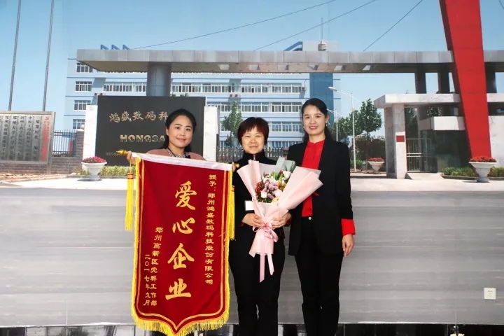2017年10月12日,鴻盛數碼園區迎來了鄭州市高新區婦聯的老師,高新區婦聯代表受到鴻盛數碼資助的大學生們送來了錦旗。8月末,鴻盛數碼積極響應政府扶貧工作的號召,在9月即將開學之際,出資資助將要走進校園的貧困家庭學生,幫他們順利實現“大學夢”。