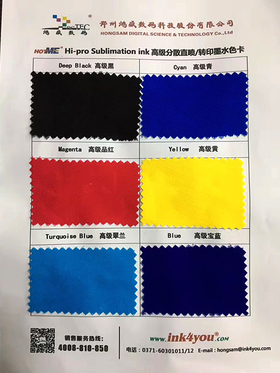 分散直噴采用直噴而非轉印的方式對滌綸織物進行數碼印花,主要用于織物直噴,具有高日曬牢度及耐遷移牢度,各色均勻,可滿足高端紡織及出口等各類嚴格檢測要求。HF型分散直噴墨水免去高溫分散必須水洗的過程,使印花工藝更為簡單,操作更加方便。