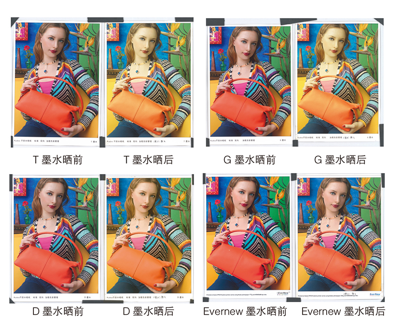 “EverNew”高耐光染料墨水不僅兼顧了染料墨水的優點:顏色鮮艷、色彩再現能力強,穩定、貯存性好、造價成本低、墨水流暢性好等;而且還在墨水耐光性上實現了巨大的突破,使原本易受到紫外線、臭氧等因素破壞的染料分子變