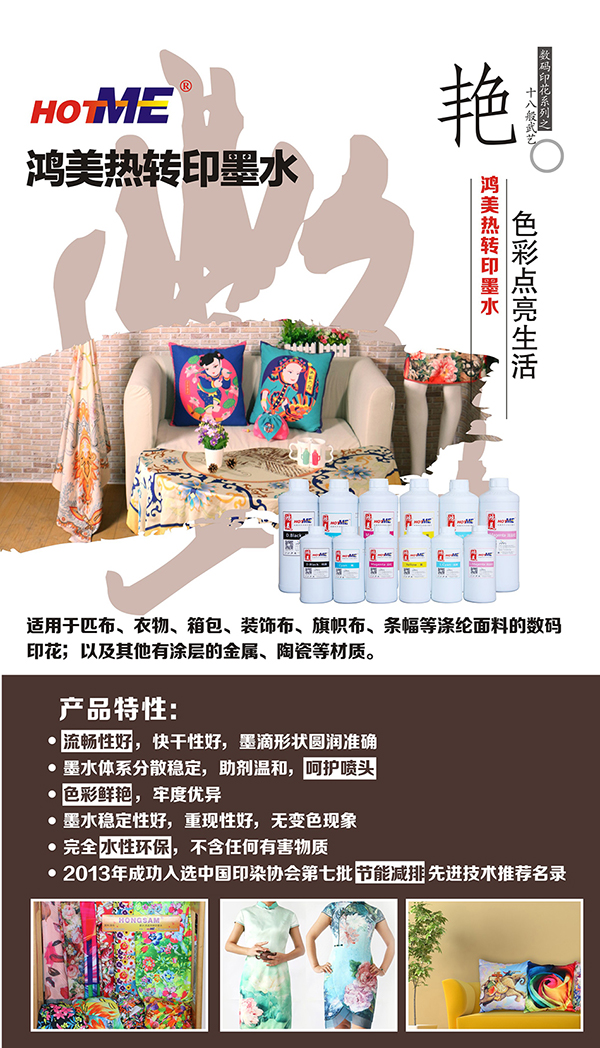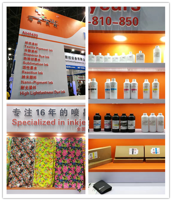 本次展會,鴻盛數(shù)碼共攜數(shù)碼印花類四大產(chǎn)品亮相現(xiàn)場,分別是:紡織涂料墨水、分散染料墨水、活性染料墨水、酸性染料墨水以及影像類顏料墨水、高耐光染料墨水等,主打的紡織類墨水現(xiàn)場演示讓許多人駐足停留。