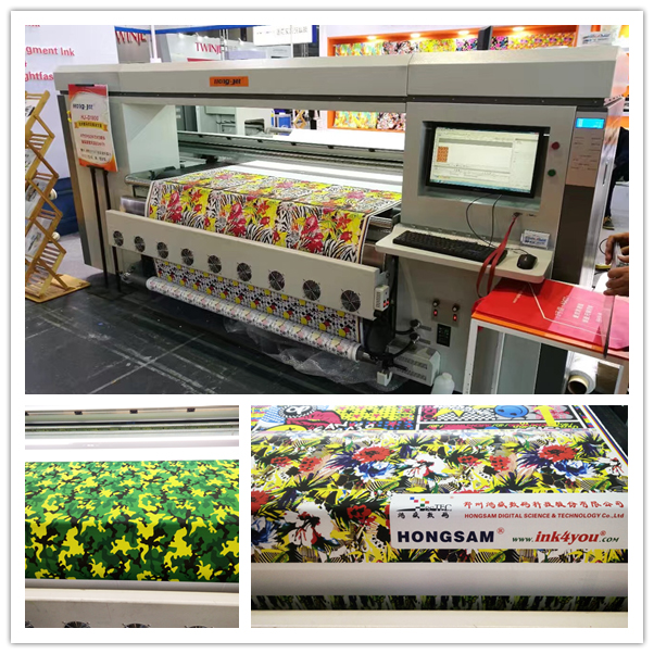 現(xiàn)場另有“鴻美”熱轉(zhuǎn)印墨水配套使用HJ-4195工業(yè)級高速紡織數(shù)碼印花機,機器采用工業(yè)級壓電5113噴頭,超高速、高精度打印。HJ-4195生產(chǎn)效率高,噴頭成本低,設備成本低,可大幅降低生產(chǎn)成本。