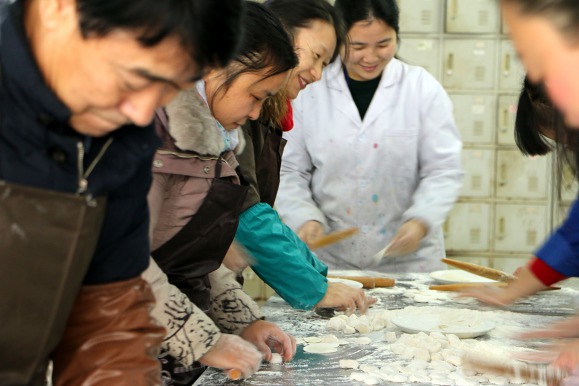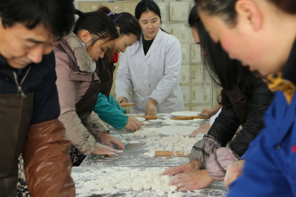 在現(xiàn)場(chǎng),你不僅可以欣賞到《切菜十八掌》、《搟皮大挪移》、《餃子經(jīng)》等絕世神功,還能品嘗到《韭菜雞蛋餃子丸》、《豬肉大蔥餃子餅》等人間美味,如此美景美食,再加上時(shí)不時(shí)出現(xiàn)的“美廚娘”,實(shí)在是讓人流連忘返啊,歐了,閑言碎語不要講,直接上圖才像樣,走你