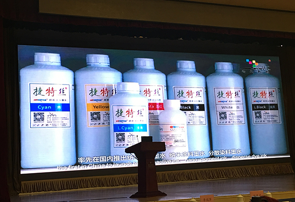 鴻盛數碼入選產品“捷特絲”紡織涂料墨水在會議上得到大力宣傳,贏得了專家評委的一致贊賞。