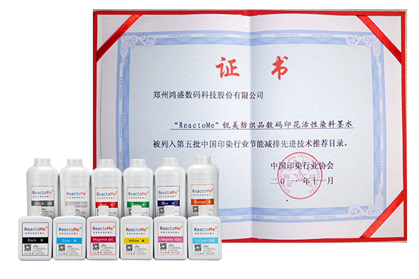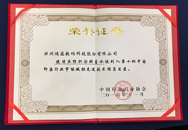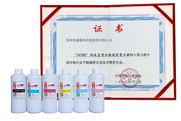 ? 2013年,鴻盛數碼“鴻美”分散直噴染料墨水被列入第七批中國印染行業協會節能減排先進技術推薦目錄