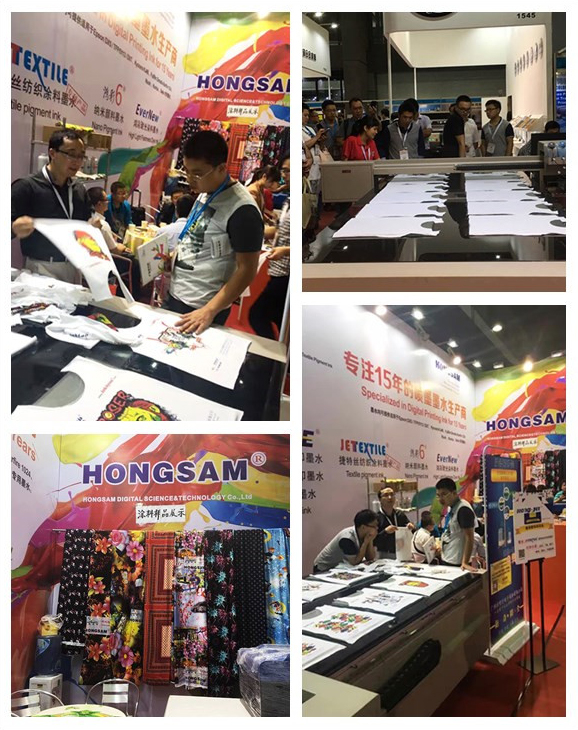 捷特絲紡織涂料墨水可做純棉直噴打印,適用于市場上所有的EPSON壓電式打印頭。另外,鴻盛新推出紡織涂料工業噴頭專用墨水,廣泛用于:柯美、富士、理光等噴頭。給予客戶更多樣的選擇,增強競爭力。現場配合鴻捷HJ-T130D多工位雙噴頭高數數碼印花機,吸引了不少客戶前來觀摩。