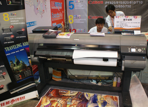 CANON iPF650/750/655/755系列5色專用墨水(染料和顏料)應用于圖文行業、GIS/CAD、短版印刷、硫酸紙制版,配合全顏料5色墨水,完成印前行業藍圖打印。此次中原廣告展現場,鴻盛數碼東風路分公司為現場觀眾展示了Canon ipf650水性染料、顏料墨水打印硫酸紙、普通紙方案。