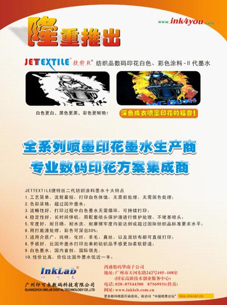 JETTEXTILE捷特絲二代紡織涂料墨水十大優點: