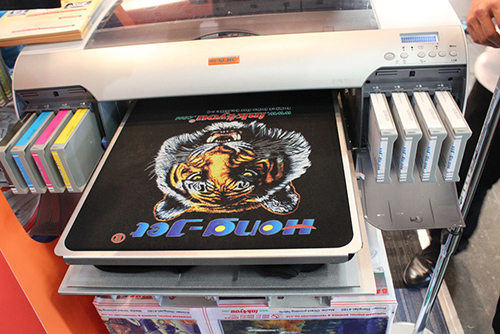 1、Hong-Jet HJ-8420平板式數(shù)碼印花機(jī)使用鴻盛“jetextile”“捷特絲”紡織涂料墨水直噴成衣、T恤印花方案。