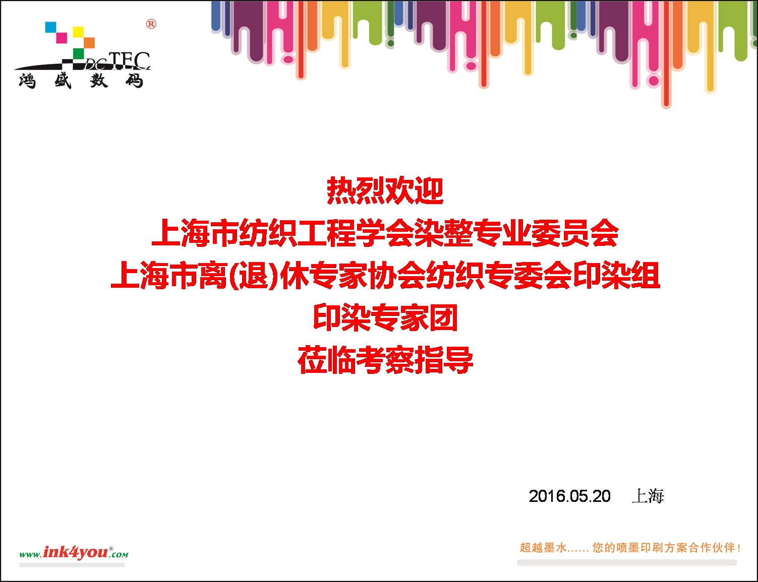 隨后,專家團移步二樓培訓(xùn)室,由鴻盛數(shù)碼董事長秦國勝致歡迎詞,中國紡織工程學(xué)會染整專業(yè)委員會副主任王祥興介紹了此行的目的和希望。