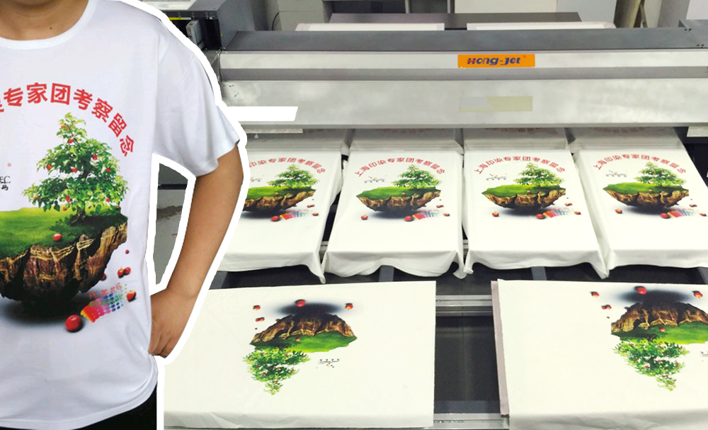上海銳美現(xiàn)場用捷特絲涂料墨水為此次活動打印了精美的T恤衫,現(xiàn)場用EPSON 7910打印了活動合影,以立等可取的速度發(fā)到專家們手上。大家贊嘆說,太快了!董事長秦國勝憨厚的嘿嘿一笑:這是數(shù)碼印花的魅力!