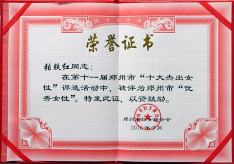 女性是社會發展的半邊天,女性更是家庭和美的紐帶,2015年10月,鄭州市婦聯開展了“鄭州市杰出女性”評選活動,旨在遴選鄭州市各行業在各自崗位上發揚“四自”精神,以作為求地位,以貢獻求發展,在繁榮經濟、推動社會發展中做出積極貢獻的女性,并展示她們的巾幗風采,激勵更多女性奮發進取。
