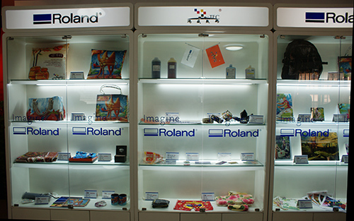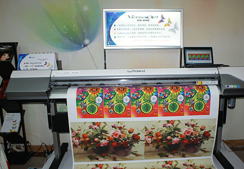 鴻盛數(shù)碼羅蘭創(chuàng)意中心ROLAND VersaArt RA-640使用“鴻彩6®”水性納米顏料墨水現(xiàn)場打印展示