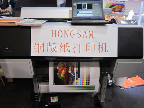 展會(huì)現(xiàn)場(chǎng)打印展示了亮麗的菜譜圖案,展示了這個(gè)方案在要求色彩艷麗、方便更換的菜譜制作行業(yè)的強(qiáng)大優(yōu)勢(shì);水性**顏料墨水高度的耐摩擦牢度,優(yōu)異的色彩、光澤表現(xiàn)力,特別是水性環(huán)保的特性,也徹底征服了慕名而來(lái)觀看的參展觀眾。