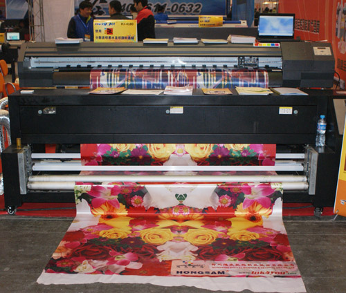 作為Roland RA640、Roland FH740系列寫真機(jī)河南核心經(jīng)銷商,鴻盛數(shù)碼東風(fēng)路分公司此次在2013春季中原廣告展上現(xiàn)場(chǎng)呈現(xiàn)了ROLAND RA640使用“鴻美?”二代熱轉(zhuǎn)印墨水打印毛絨布、泳裝布、滌綸等印花方案。“鴻美?”二代熱轉(zhuǎn)印墨水采用更新的工藝和原漿制成,基本解決了市場(chǎng)反應(yīng)的一系列問題,在原熱轉(zhuǎn)印墨水基礎(chǔ)上,保留了其色彩的優(yōu)點(diǎn),從墨水流暢性,色彩飽和度、牢度,紙張快干型和附著力等方面著手進(jìn)行了翻天覆地的改進(jìn),尤其適合布匹生產(chǎn)型客戶使用;ROLAND RA640,黃金七代打印頭,采用新打印技術(shù),影像再現(xiàn)還原,此次春季中原廣告展,ROLAND RA640加之配套的“鴻美?”二代熱轉(zhuǎn)印墨水,“雙劍合璧”,為現(xiàn)場(chǎng)觀眾呈現(xiàn)了一套高品質(zhì)的“鴻美”二代熱轉(zhuǎn)印方案,吸引眾多觀眾前來觀賞。