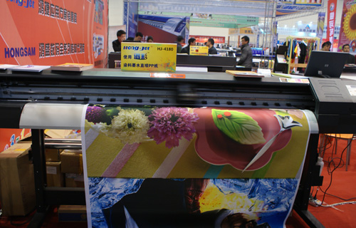 此次春季中原廣告展上,鴻盛數(shù)碼鄭州東風(fēng)路分公司多次展示了HJ-4180高速噴墨打印設(shè)備。HJ-4180采用新型第五代微壓電打印技術(shù),配合VSDT可變墨滴技術(shù),使墨滴細(xì)密,高精度重現(xiàn)圖像豐富細(xì)節(jié);與之配套使用的“鴻彩?”染料墨水,具有優(yōu)良的耐光性、耐候性和防水性,凸顯了鴻盛數(shù)碼影像噴墨方案的色彩準(zhǔn)確性和色彩飽和度,滿足了廣告、影像行業(yè)對(duì)于噴墨墨水的高品質(zhì)需求。