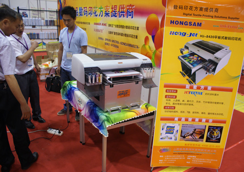 HJ-8420平板機使用“捷特絲®”二代紡織涂料墨水直噴T恤印花