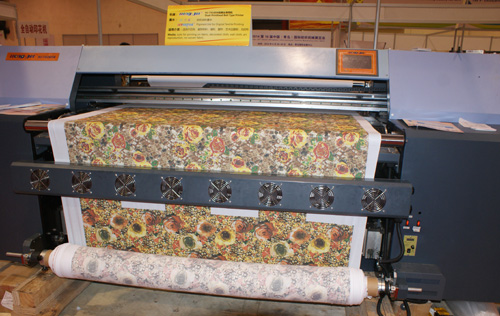 高速數(shù)碼印花機HJ-4162配合“鴻美®”二代熱轉(zhuǎn)印墨水打印滌綸織物印花