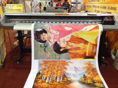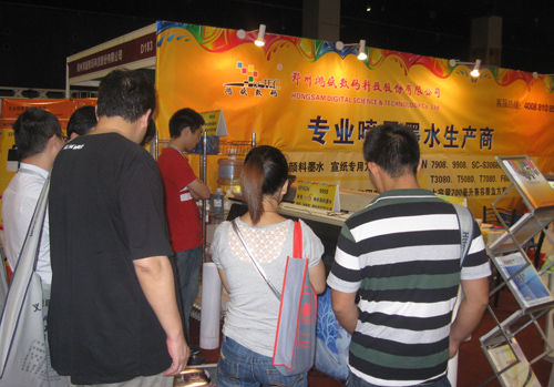 “鴻彩6®”四代納米顏料墨水是鴻盛數碼特別針對裝飾畫行業客戶的需求,推出的更適合裝飾畫生產的四代顏料墨水產品。2013第八屆中國框業與裝飾畫展覽會上,鴻盛數碼展位現場展示了HJ-4182噴墨打印機配合“鴻彩6®”四代顏料墨水,打印油畫布、鉆石畫等裝飾畫方案。“鴻彩6®”四代納米顏料墨水色彩表現優異,尤其是黑色,大大提升了高端藝術品裝飾畫的畫質,特別是今年很流行的鉆石畫,“鴻彩6®”裝飾畫噴墨方案的打印效果,吸引眾多鉆石畫廠商前來咨詢、參觀。