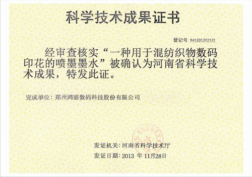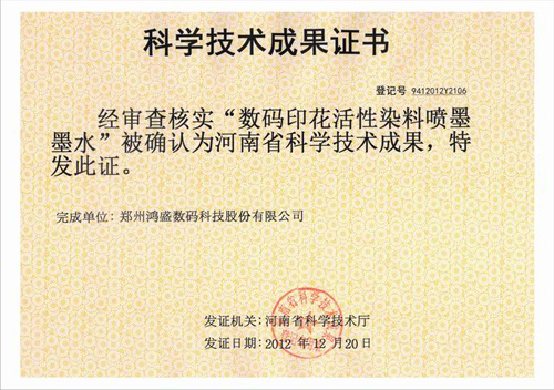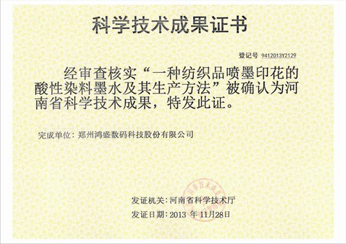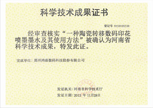 鴻盛數碼秉承“科學、誠信、超越、環保”的核心企業價值觀,多年來在研發(R&D)領域取得豐碩成果。在2012年12月至2013年11月的一年時間里,公司獲得國家發明專利5項,并被河南省科技廳分別認定為河南省科技成果,它們分別是: