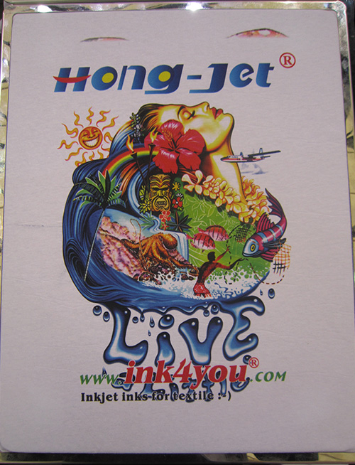在第五屆全印展中,鴻盛數碼帶來了“捷特絲”紡織涂料墨水、鴻盛LED-UV光固化噴墨墨水以及“鴻彩6”水性納米樹脂顏料墨水等一系列產品,針對紡織品印染、藝術品復制、家庭裝飾、個性化定制等行業,提供了T恤直噴印花、噴墨打印瓷磚、手機殼以及高端藝術品復制等多種噴墨墨水應用解決方案。