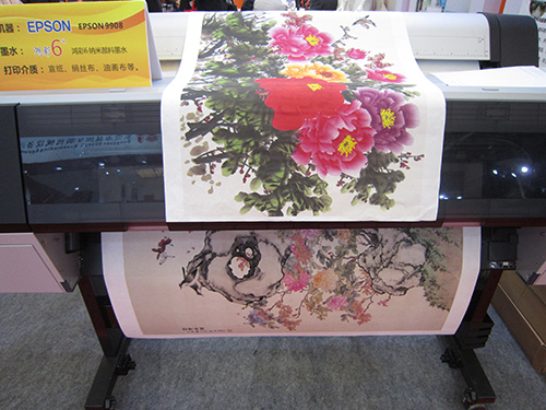 第五屆中國國際全印展上,鴻盛數碼還展出了“鴻彩6®”水性納米顏料墨水噴墨打印宣紙、絹絲布、油畫布等藝術品復制方案,現場展示科技與藝術的**結合。