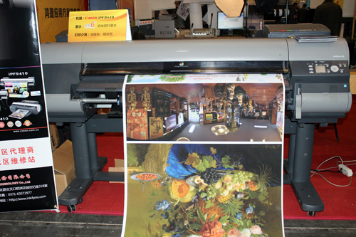2014中原春季廣告展上,鴻盛數碼鄭州東風路分公司還在現場展示了“鴻彩6®”顏料墨水藝術品復制方案。“鴻彩6®”顏料墨水藝術品復制方案采用不斷優化的“鴻彩6®”顏料墨水,結合市場上的主流設備、卓越的GMG色彩管理軟件,使得整個藝術品復制方案能夠更真實的還原原作的真實風采,方案經受市場的長期考驗,已經獲得藝術品復制高端用戶的實際需求。目前,“鴻彩6®”顏料墨水整個色彩可使得水墨國畫色彩還原在95%以上,其他國畫色彩還原在90%以上。