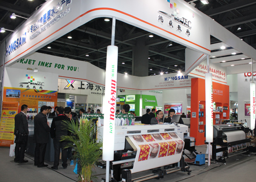 展會上,鴻盛數碼推出了幾套全新的噴墨墨水方案,采用新機型,配合鴻盛數碼各行業專用噴墨墨水,直接噴墨打印各種材質印花,通過實際展示效果描繪出鴻盛數碼為推進噴墨行業的發展做出的努力和貢獻。