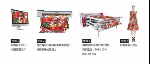 現象,彈力面料的張力下露白芯現象,在一些敏感面料上的熱遷移色牢度差。所以直噴的工藝就應運而生。