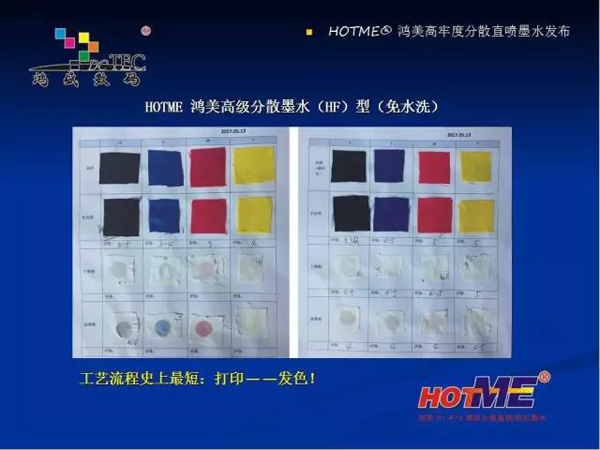 (3)關于水洗。采用此款墨水,一般不需要水洗,但是如果水洗顏色會更亮麗,各項色牢度會更優異。數碼印花的分散直噴的墨水的研發一直在持續往前進,對于應用的工藝也是在不斷的優化中,希