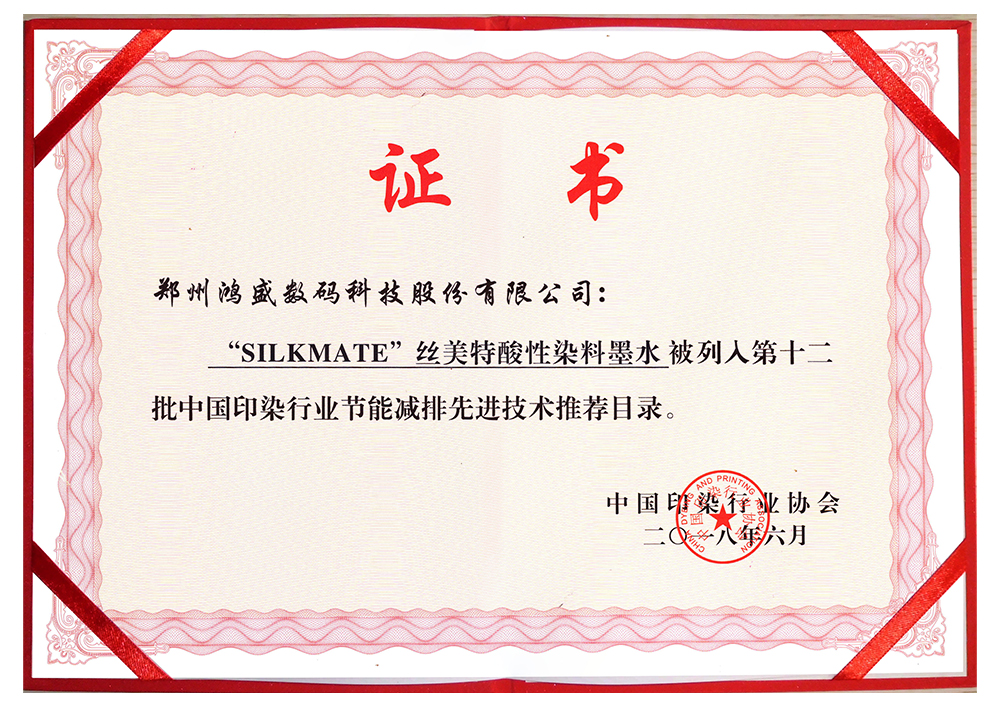 2018年,絲美特酸性染料墨水被列入第十二批《中國印染行業節能減排先進技術推薦目錄》