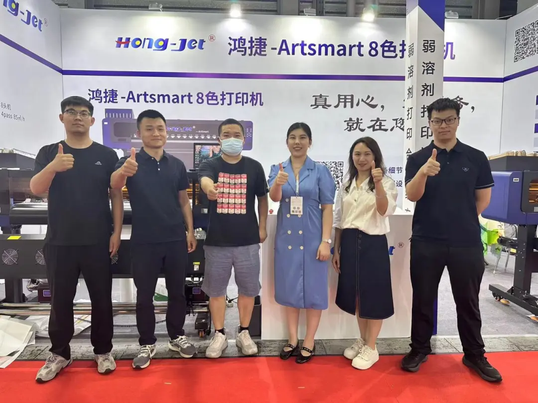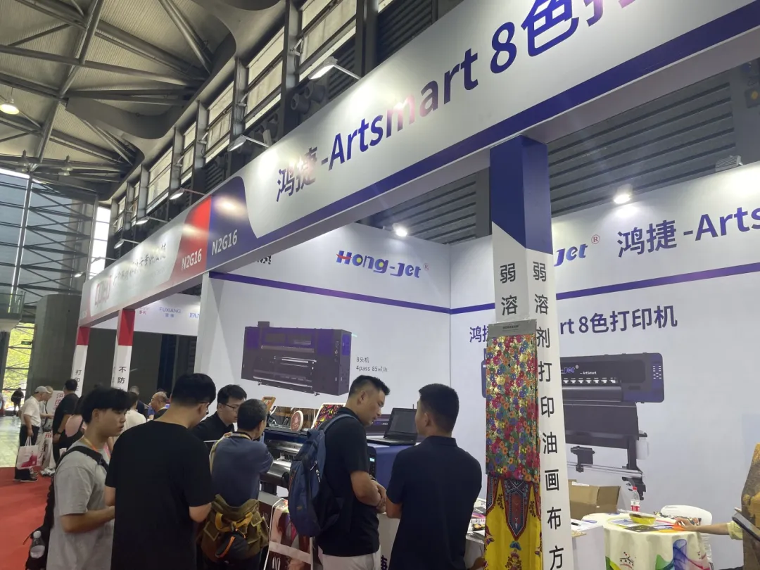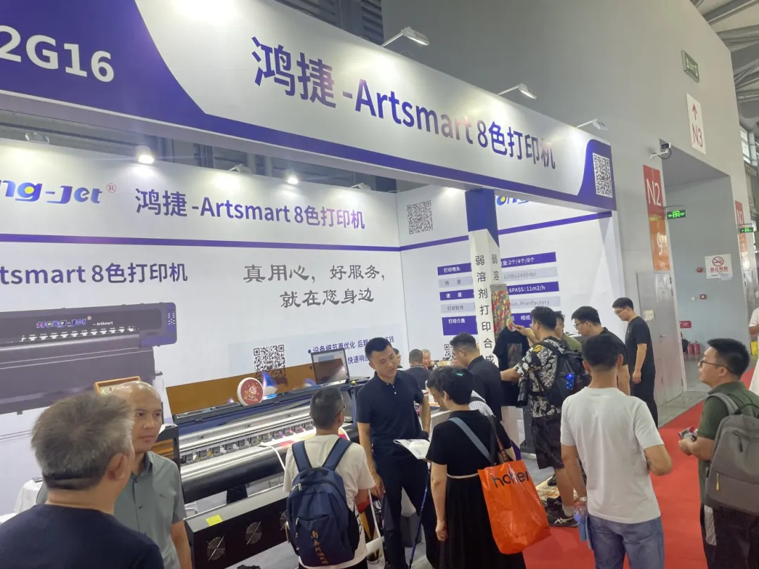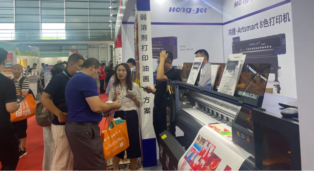在展會現場,HONGJET-artsmart 8色雙頭數碼打印機憑借其卓越性能脫穎而出,以驚人的快速響應能力、穩定的輸出品質、高精度的打印效果以及成本效益高的特點贏得了廣泛關注。該機型不僅兼容油畫布、高端相紙、銅版紙等多種打印介質,完美滿足不同領域的個性化需求,更以其在速度與質量上的雙重優勢,成為了現場的一大亮點。