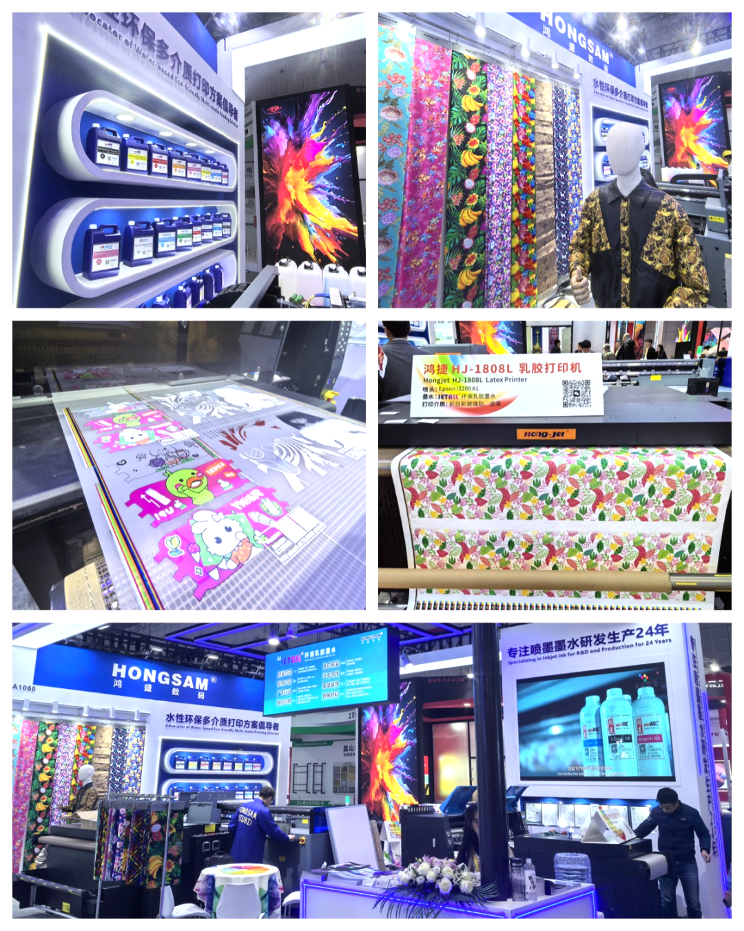 本次展會,鴻盛數碼展示了旗下全系列墨水:數碼印花、數碼影像、數碼印刷,以及HJ-1808L乳膠打印機、JETALL®水性環保乳膠墨水打印方案,鴻捷全數碼柯式燙畫解決方案,涵蓋了墨水、設備及打印方案,吸引了眾多觀眾駐足了解!