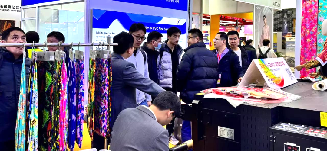 展會現場,鴻盛數碼吸引了眾多行業新老客戶的關注,他們駐足在展位的打印展示區域近距離觀看產品展示方案,現場工作人員耐心熱情地招待每一位前來參觀的觀眾,以專業的角度為觀眾全面介紹講解產品的特點以及應用,并耐心為觀眾解答問題。通過現場的展示及講解,鴻盛數碼的全系列紡織噴墨墨水產品及打印方案得到了客戶的一致好評!