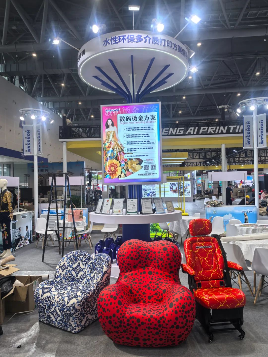 此次參展,鴻盛數碼以別具匠心的“小攤位”展位布置,多方面、多角度地展示了旗下各類數碼印花、數碼印刷、數碼影像及 “墨水 + 工藝 + 服務” 一體化解決方案,全面覆蓋從布料、皮革到軟木、金屬等不同材質的印花應用,助力傳統印花向 “高效、低耗、零排放” 模式升級。