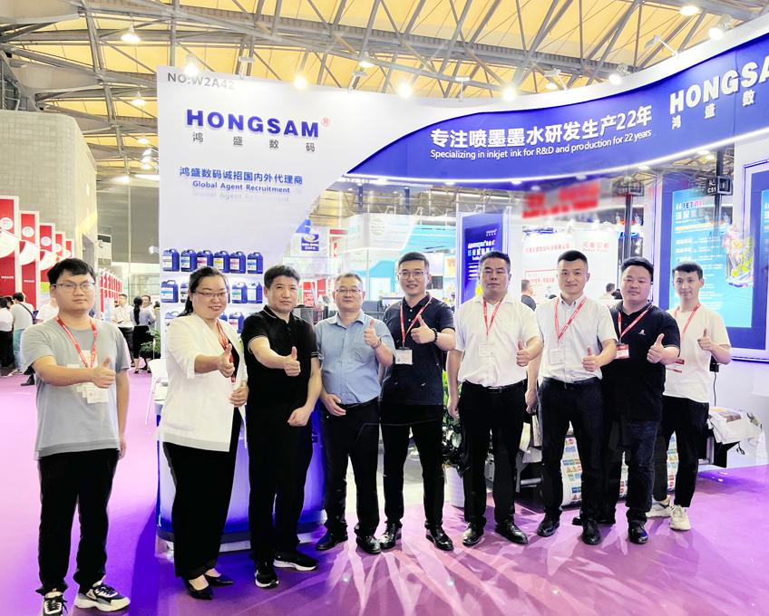 第 23 屆上海國際廣告展于 2023 年 9 月 4 日至 6 日在上海盛大舉辦,鴻盛數碼展示的JETALL?水性環保乳膠墨水打印方案吸引了眾多觀眾駐足參觀,現場演示了金屬、皮革、杜邦紙等不同材質的打印方案。