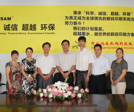 2011年,中國隆重的傳統節日春節剛過,《FLAAR Reports》主任、高*編輯、噴墨行業全球知名專家Dr.Nicholas Hellmuth,專程從美國搭機飛來鄭州,冒雪訪問位于鄭州市高新技術產業開發區的鄭州鴻盛數碼科技股份有限公司總部所在地——鴻盛數碼科技園。鴻盛數碼董事長秦國勝先生全程陪同Dr.Nicholas Hellmuth參觀鴻盛數碼科技園,并一起研討噴墨行業的發展趨勢。