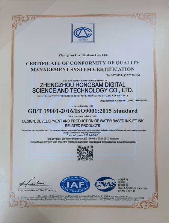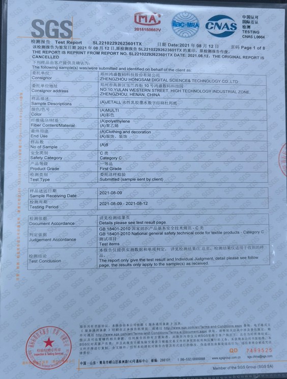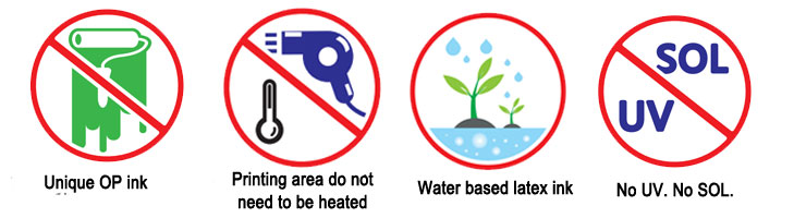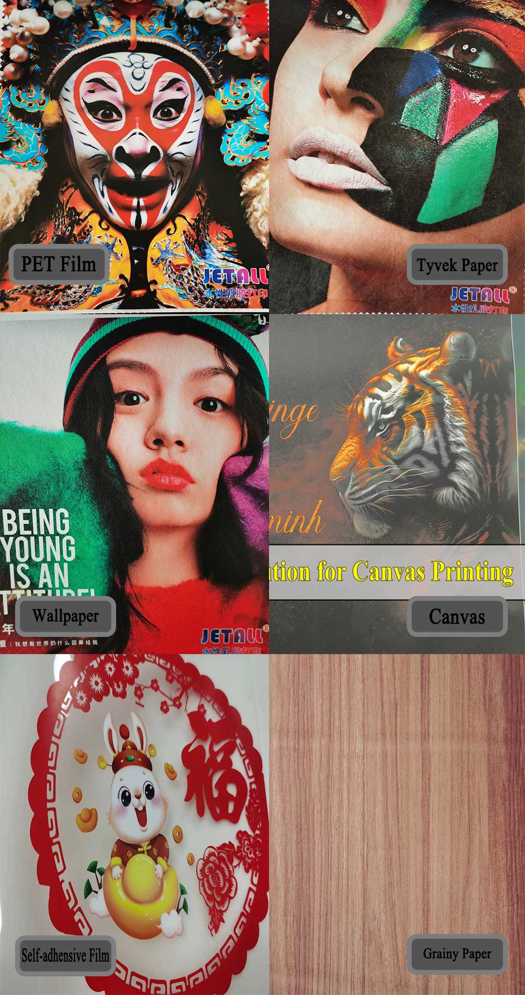 鴻盛JETALL水性乳膠墨水綠色環保,無論是打印過程中還是成品中均無異味,有效提升了產品的環保品質,迎合了市場需求,改善了生產環境,降低了人工風險;無易燃耗材,降低了生產火災風險;具有適應打印介質多樣性、圖像耐久性強等優勢,尤其適用于裝飾、壁紙、壁畫等對環保要求極高的行業,是代表噴墨打印未來方向的功能性墨水。