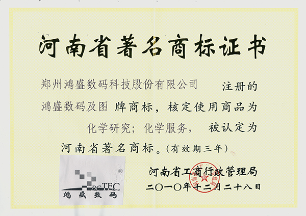 2010-鴻盛數碼及圖牌商標-河南省著名商標