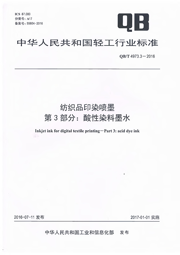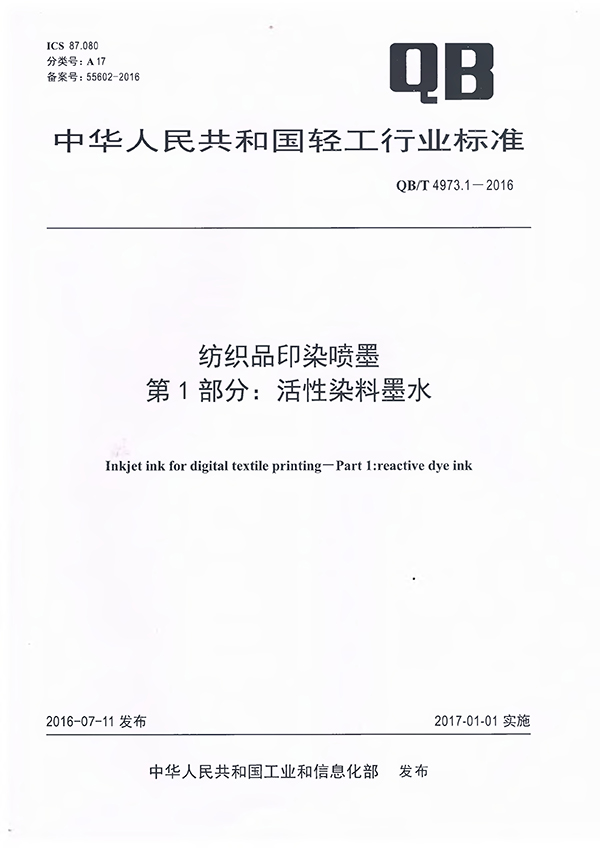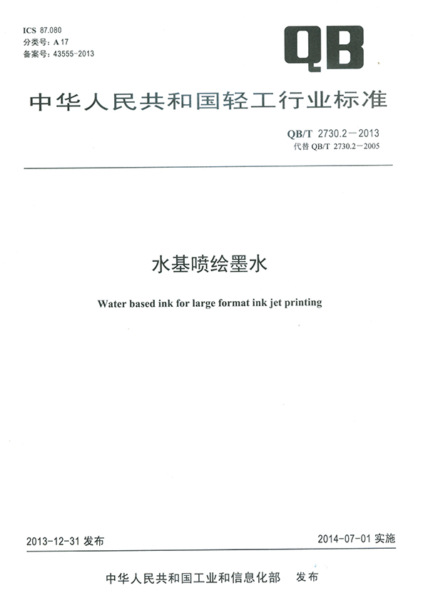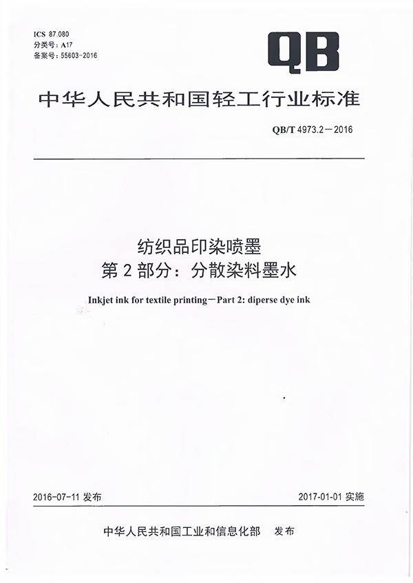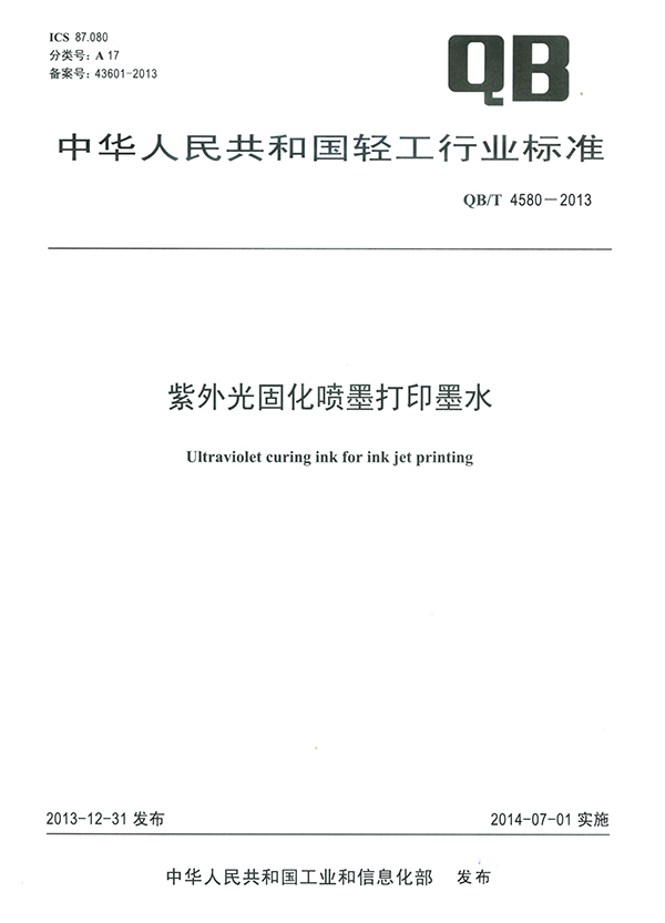 中國輕工業行業標準 紫外光固化噴墨打印墨水